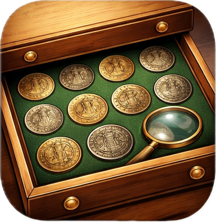 Ancient Coin Cabinet is a personal coin catalog. It helps you organize, photograph, and document coins you own.